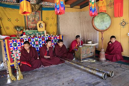 Four Monks in Waiting, Jambay Festival, Bumthang, Bhutang