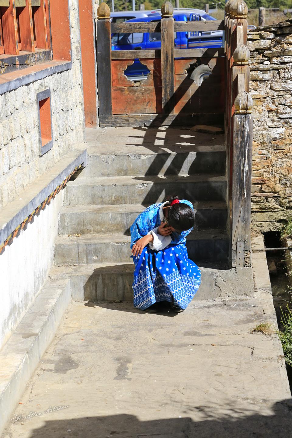 Girl on Cell, Jambay Festival, Bumthang, Bhutan